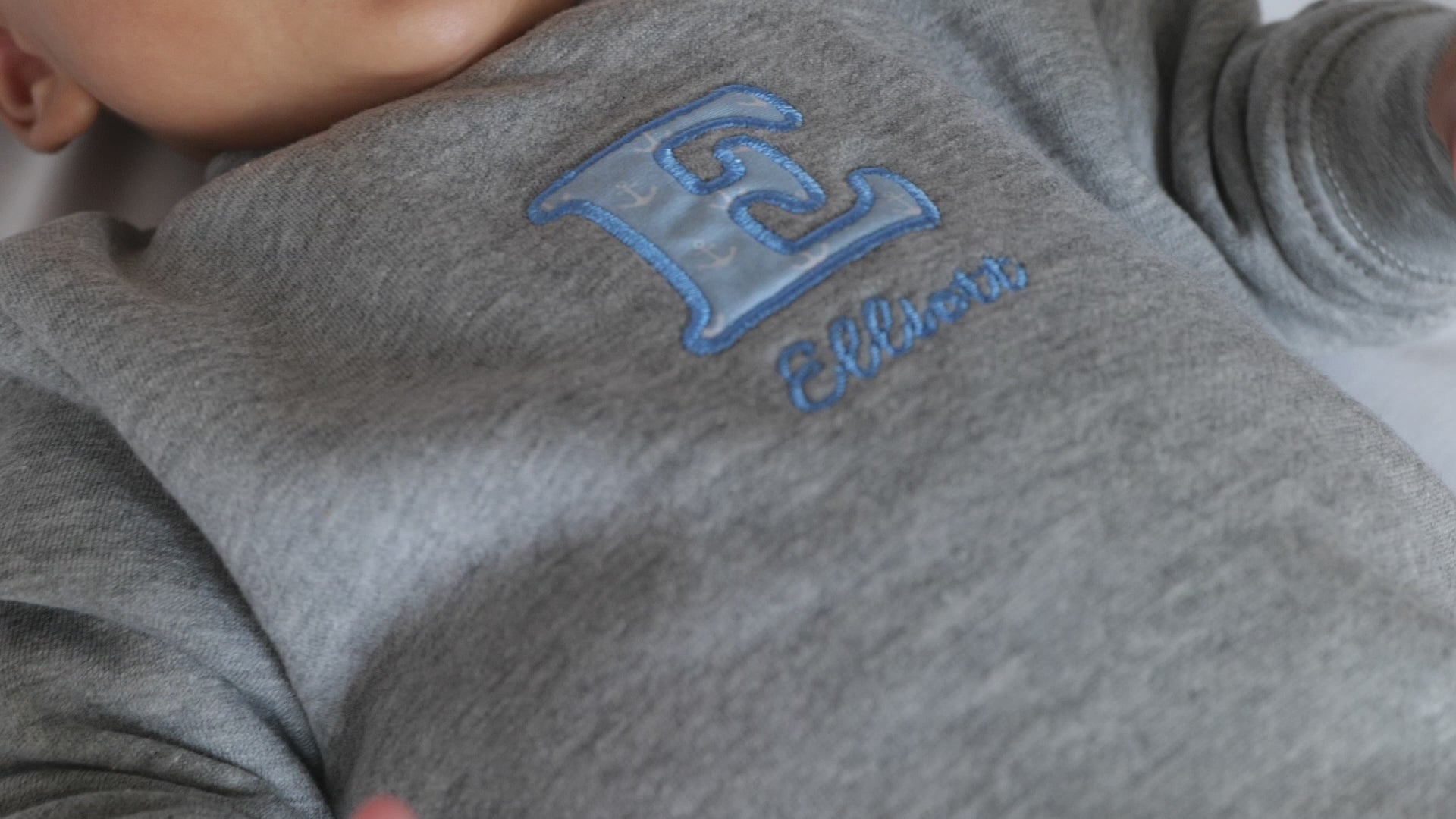 Personalised embroidered baby sweater with sleek satin stitching around the alphabet letter, choose your sweater colour.
