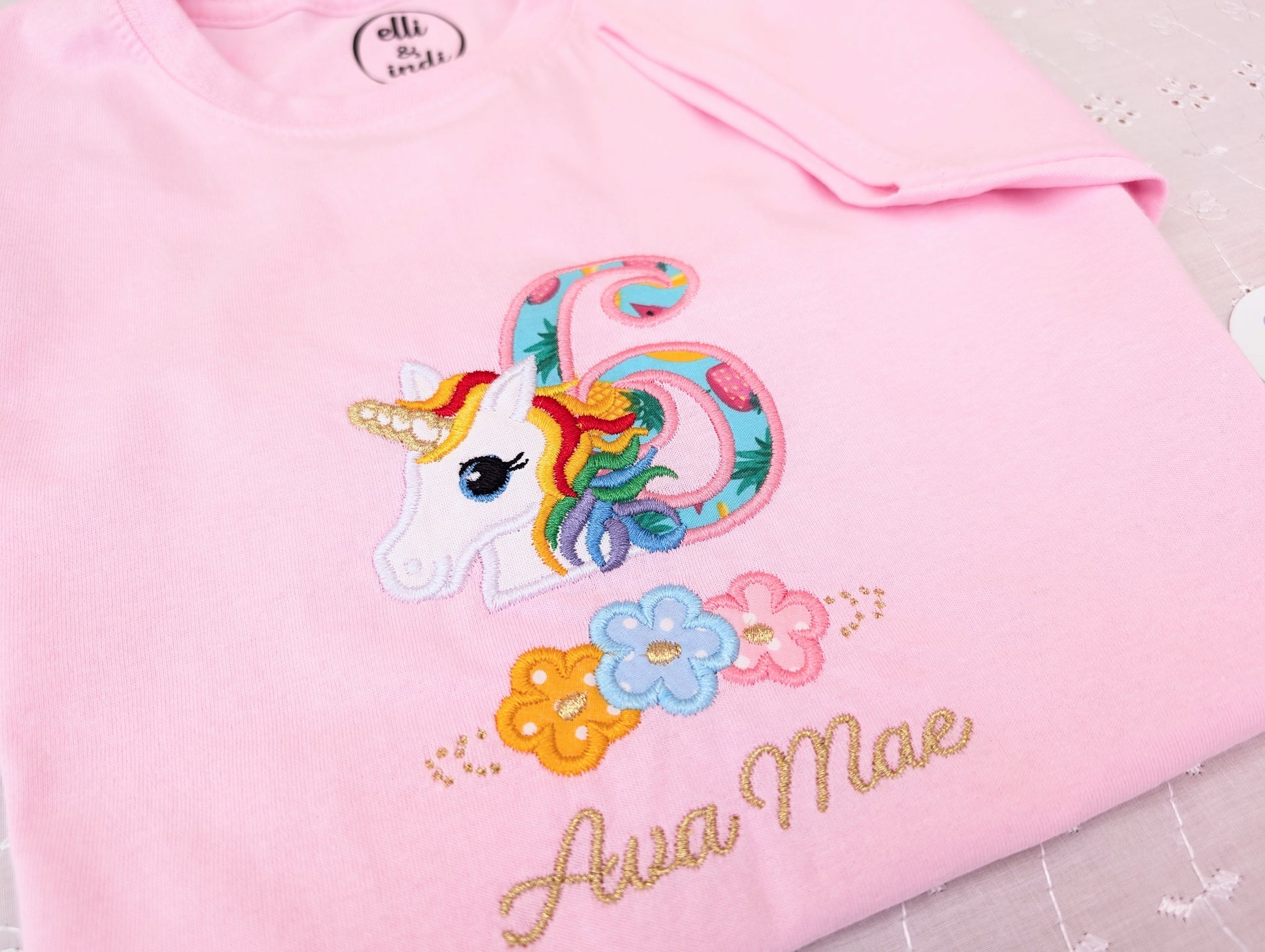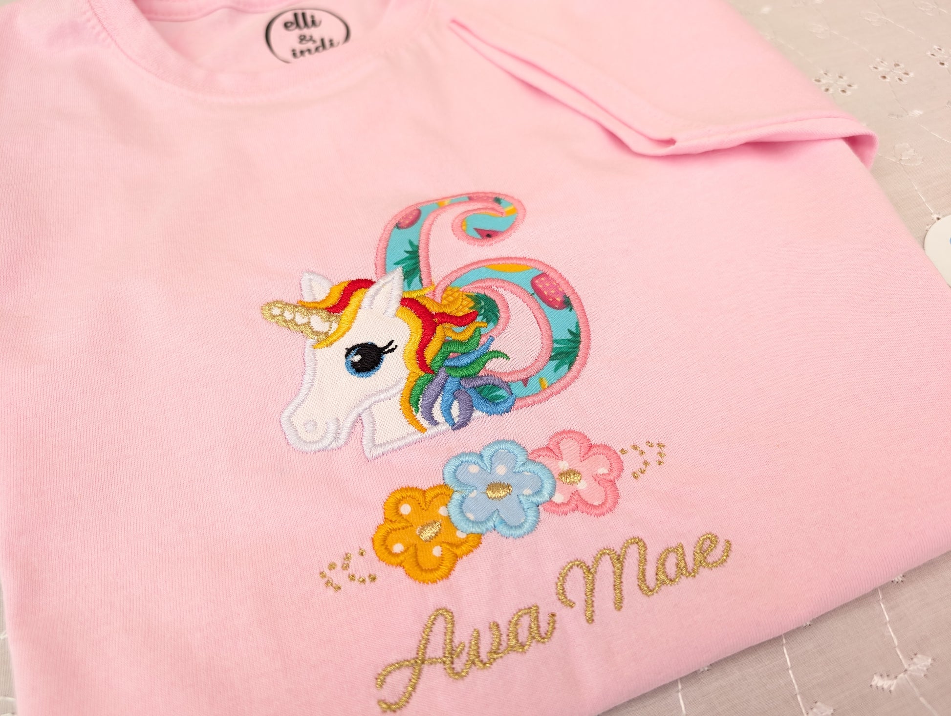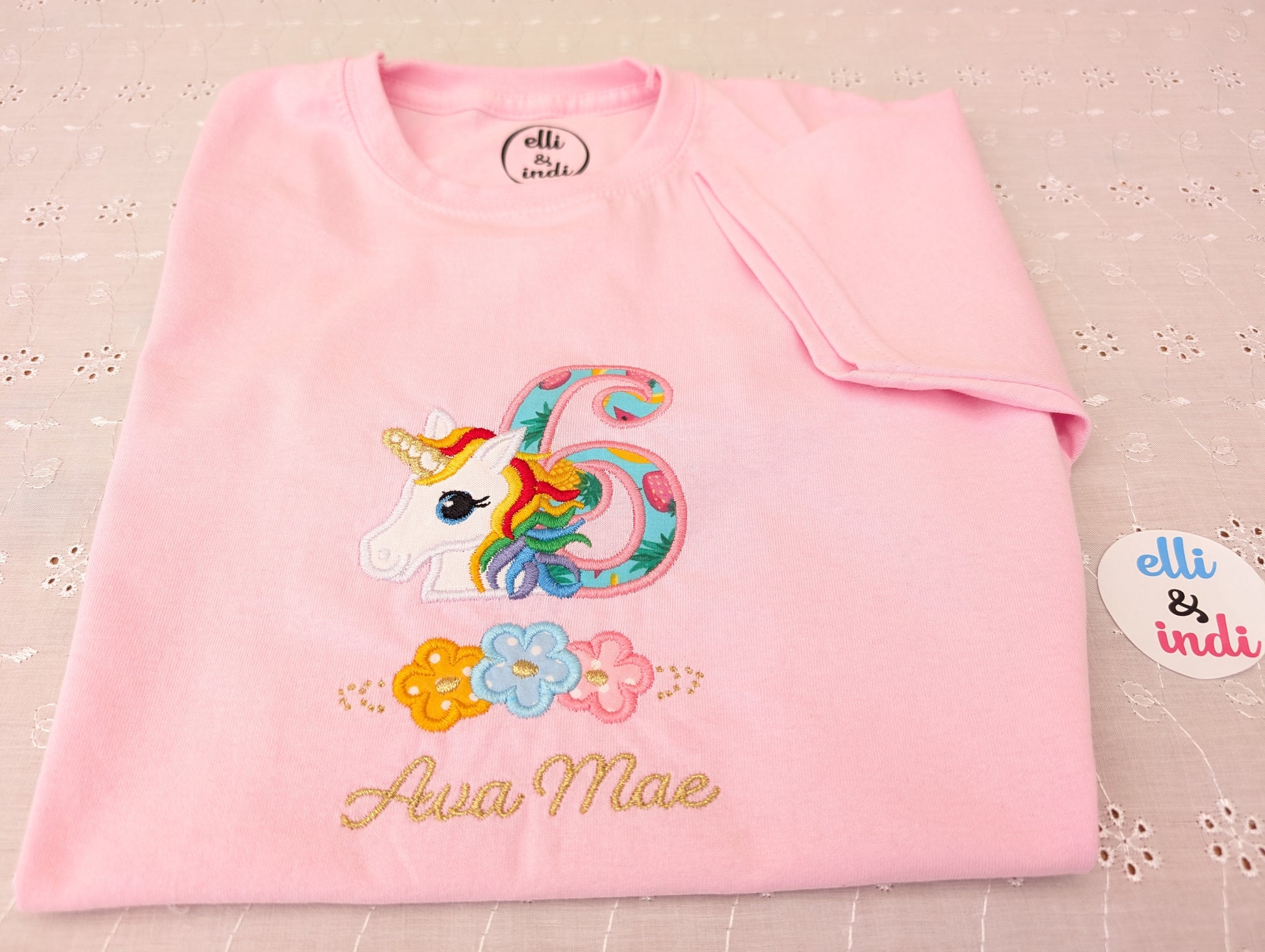 Personalised Girls Unicorn Number t-shirt | Personalised Unicorn Name Top